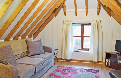 Bedroom: Kingsize (5ft) Bed. Electric storage heaters, electricity, bed linen and towels included. Travel cot and highchair available on request. Welcome pack. Sitting-out area. Shared lawned garden. Shared 1-acre grounds. Bike store. Parking for 2 cars. No smoking.. Walnut Tree Cottage is a delightful, detached thatched cottage within the owner’s lawned grounds and lies opposite the owner’s home, which is steeped in history and which, in the 1830s, included a wheelwrights, post office and bakery. Also within the grounds is The Old Post Office (ref 30425) and The Hideaway (UKC540), providing an ideal opportunity a for another couple or guests wishing to holiday together whilst retaining their own space. Walnut Tree Cottage comprises a shower room and kitchen/dining area downstairs, and an upstairs living area and sofa bed suitable for children, leading to a double bedroom. It has plentiful beams and wooden floors.
