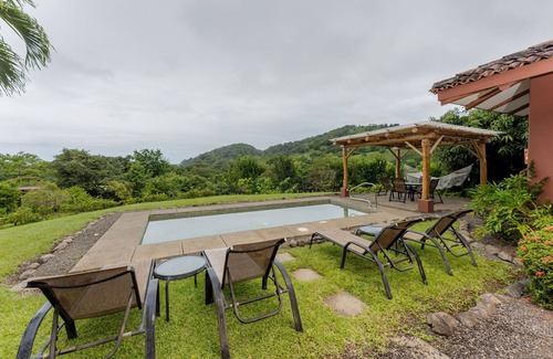 Estrella a traditional-style, 3-bedroom terracotta villa secluded into the Guanacastecan savannah. The perfect place for a retreat into nature with a breezy lounge next to a rectangular pool to cool off and watch the sunset. Ample to fit 6 guests comfortably. The villa is close to a protected animal refuge center where animal calls will encompass you during your stay.