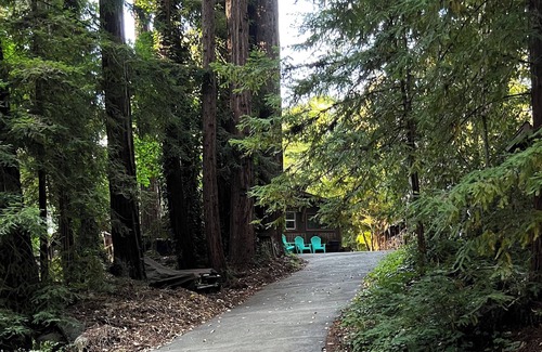 Our charming studio is nestled in a majestic redwood forest with a year-round creek flowing through the property. Leave the windows open at night and you will smell the sweet scent of the forest and hear the owls in the trees. Go outside and look up for most summer nights we have beautiful, starry skies. One of 4 cabins on the property, this room is small and yet has what you need after a day of exploring all Santa Cruz has to offer. To end the day, may I suggest a good novel by the creek or a nap in the sun.