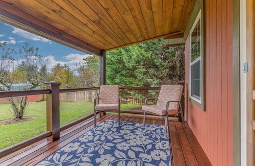 Curious to see how it would be to live in a tiny house or wanting a simple respite from your daily routine? Ideal couple's retreat away from the hustle and bustle. This tiny cabin/cottage is in a meadow setting. Covered front porch overlooking expansive yard with mature landscaping and fruit trees. Conveniently located near orchards for apple or pumpkin picking, cider donuts, and other fall activities. Several wineries nearby too. Midway between Hendersonville and Chimney Rock off of State Hwy 64 East. See more details in the post about proximity to other attractions. This is a residential neighborhood and the location is best described as "semi-private" as you will see or hear families in the area. Cabin is approximately 340 square feet. The kitchenette and sitting room are at the front of the cottage. Bedroom at the back with a queen-sized bed. (no climbing ladders to get to the sleeping area). The bathroom is about the size of an RV bathroom with the shower measuring 27"x32" and the commode area 20" wide. (May not be comfortable for all people; especially pro football players). Level, private driveway. Fire pit close to the cabin with firewood provided. Charcoal grill. (Guest to bring charcoal, starter fluid)