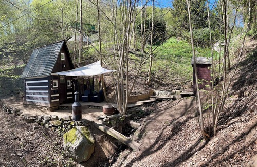 Back-to-nature experience: No indoor plumbing—guests use a charming dry toilet nestled in the woods. Drinking water is bottled; utility water comes from the nearby pond or creek .