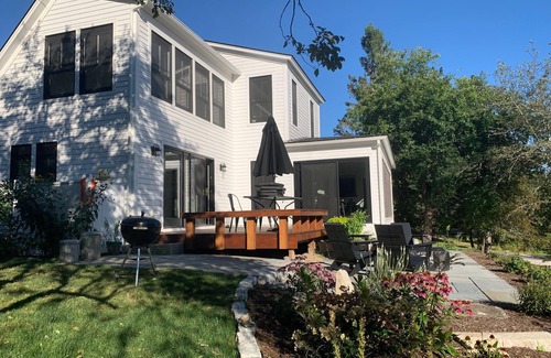 The house has three bedrooms and three bathrooms. Two bedrooms have Queen beds and one has a full with a twin trundle. The house has quality linens. Sit and have your morning coffee or evening cocktails in the three season room overlooking the Mill Stream. Gas fireplace in the sunroom. Internet, and 2 kayaks for your use. Finishing touches are just being completed so you will be the first to experience this lovely home.