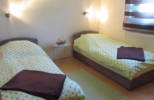 Badacsonytomaj 29 km from Keszthely: House "Toth", surrounded by vineyards. Above Badacsony, in the district of Badacsonyörs 2 km from the centre of Badacsonytomaj, 3 km from the centre of Badacsony, on a slope, in the residential district, 1 km from the lake, 2 km from the beach. For shared use: property (fenced) with trees, meadow. Private: garden with lawn, swimming pool (above ground) round (3,60 m diameter, depth 80 cm, seasonal availability: 16.May. - 12.Sep.). Children's playground (swing, sandbox). In the house: air conditioning. 500 m long narrow motor access. Parking (for 2 cars) on the premises. Grocery 2 km, supermarket 13 km, restaurant 500 m, bicycle rental 2 km, railway station 550 m, thermal baths "Hévíz" 35 km. Golf course 28 km, tennis 3 km, cycle lane 500 m, children's playground 1 km. Nearby attractions: Festetics Castle 29 km, Tihany 36 km, Balatonfüred Annagora Aquapark 36 km, Tapolca Lake Cave Visitor Centre 12 km, Szigliget Castle 12 km, Folly Arboretum 2 km. Please note: 1st floor is closed and not occupied. Owner lives in separate semi-detached house. The owner has a dog.