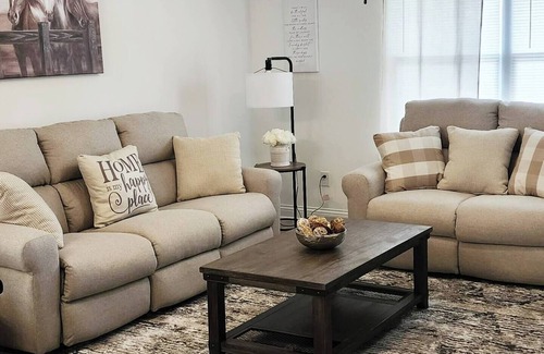 This Comfy, Modern and Newly constructed (built in 2022) Townhome will welcome you, your family, or friends. It features 3 bedrooms with a flat screen TV in each room, 1.5 bathrooms and a Hot tub for you to relax. It is located in Jeffersonville, Indiana and few minutes away from all that Jeffersonville, IN, Clarksville, IN and Louisville, KY has to offer.