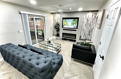 Welcome to your home away from home! Newly renovated, luxe modern 3BRM 2BTH home is the perfect choice. As you step inside, you'll be greeted by an inviting living area & adjacent dining area. Relax in the tropical private backyard, screened in seating. Kitchen is equipped with coffee station & cooking utensils. The main bdrm features a king-sized bed. Other bdrms offer full bed & 2 twin beds. 2 Full SPA-like Baths. 7 min:Busch Gardens/ 4 min:USF/ 20 min:Downtown/ 45 min:Clearwater /1hr: Orlando
