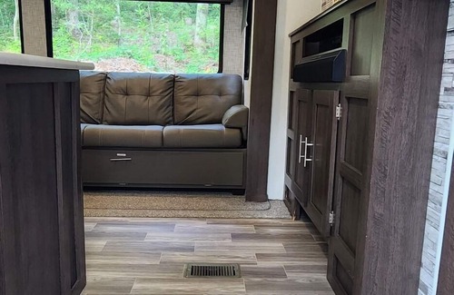 Travel trailer near the creek, short walk to pool and playground, sleeps 8 is located in Mill Spring. Travel trailer near the creek, short walk to pool and playground, sleeps 8 provides accommodation, featuring Child Friendly, among other amenities. This House features Child Friendly, to make your stay a comfortable one.