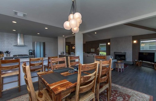 Treasure Cove truly is even more of a treasure now with new renovations inside and out. The style is modern but warm and boasts more windows for ocean views. Rinse off the sand with the outdoor shower then soak in the six person hot tub on the patio and watch sea life, fishing boats and all the ocean has to offer. Treasure Cove comfortably sleeps 6 and is great for a few couples or a family getaway. This custom, 1810 square foot, two story home located just a few houses away from downtown Trinidad has great ocean views and coastal access trails (Trail located directly in front of home leads to Trinidad Head & Beach). Relax by the fireplace and enjoy the large Smart T.V. Log on to Netflix and have fun watching your favorite shows and movies.