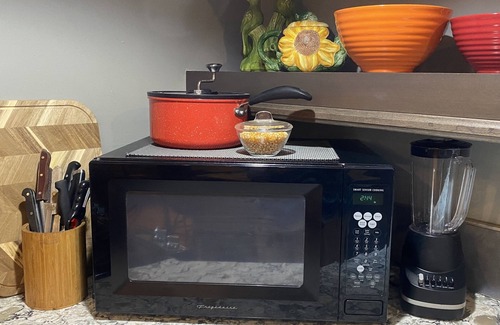 We do allow guests to bring one or two dogs and we charge an additional cleaning fee of $50. Please contact us prior to booking and give me the breed, age and weight of your dog. Dogs are not allowed on the beds or sofas. Please bring two covers for the sofa, and a dog bed. Please bring a crate if you intend to leave your dog home alone. The yard has fences, but they may not securely keep a pet in the yard without supervision. Pease scoop poop, etc and help us prepare for our next guests. Please feed your dog outside.