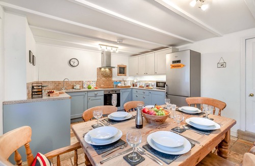The crackle of the roaring wood burner, comfy plush sofa, and hearty homely touches everywhere you look in the lounge create a cosy ambience that invites you to unwind. The generous country cottage-style kitchen/diner perfectly combines a delightful coastal colour palette with everything you need to rustle up a delicious locally sourced feast. Upstairs, each of the three bedrooms, one king-size and two singles, features charming exposed wooden floorboards, plenty of natural sunlight and crisp linens that’ll soothe you into a peaceful rest before tomorrow’s adventure. Make the most of your fresh, countryside air by dining alfresco in the enclosed courtyard; after sundown, enjoy a glass of something chilled as you stargaze way past bedtime.