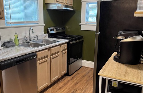 This beautiful vintage home is at pedestrian-friendly streets next to the neighborhood park, the famous Dreamland BBQ restaurant is cross street, convenient store and bike rental are all in your door step. Less than five-ten min. walking distance to UAB, 5 points south, downtown, hospitals, etc. Shopping, dinning and entertainments are in 5-10 mins walkable distance. Adorable home built in the early 1900s houses three apartments that have been fully renovated, features original hardwoods, abundance of natural lights, 10+" high ceiling, and fire places, ground first floor, apt 1 is a two bedrooms two bathrooms apt with private entrance from front porch and also back entrance that connect with other two floors by the stairs. Second floor is also a two bedroom two full bathrooms apt 2 at the ground floor with attached large front porch. Apt 2 is two bedrooms two bathroom apt on the 2nd floor and above that is the the 3rd floor and also the top floor the studio apt. Each apt has fully equipped kitchen with updated appliances, living room, full bathrooms and wash and dryer. Each have it is own private coded entry door, and are connected by a private stairwell. Ceiling fans are in every room, bed and bath linens provided, flat screen smart TV, premium speed wifi, etc. This is a very nice, clean, and fully equipped and furnished beautiful home. A chance for at-home feel for the price of a five stars hotel. Lots space for out of town executives, UAB related business travelers or students, families for extended visits, wedding groups, Robert Trent Jones Golf groups, and events.