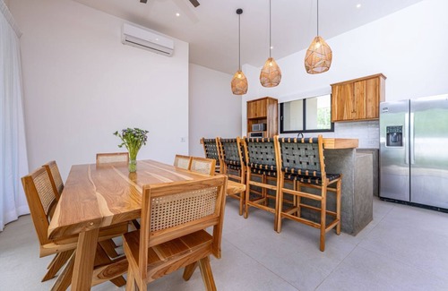 Escape to this sleek, tropical 3-bedroom retreat, just a 7-minute walk from the stunning beach of Avellanas (with the nearest access taking you to the south end of the beach). Inside, you'll find bright, open living spaces, a stylish kitchen, and three cozy bedrooms, each featuring a luxurious king-sized bed. Step outside to your private patio and relax by the pool, surrounded by lush greenery.