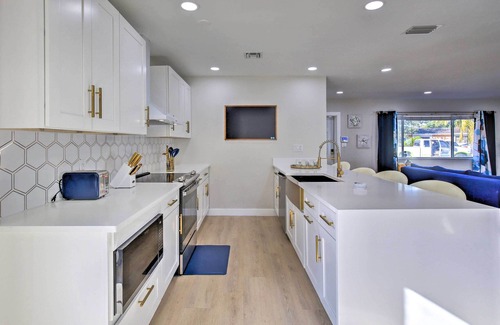 Check into our modern three-bedroom, 2.5-bathroom home situated in an up-and-coming area of vibrant Ft. Lauderdale. This colorful ranch-style house is just a quick drive from the most epic downtown attractions, restaurants, and more. Not to mention, you’ll be just a 15-minute drive from beautiful sandy beaches. Looking for a homebase to lounge by the pool, sip on cocktails with friends, or relax by a romantic fire under the stars? Welcome to your dream getaway.