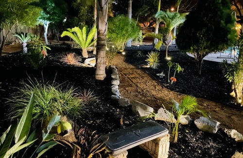 Our home is surrounded by gorgeous landscaping and over 20 palm trees that will make you feel welcome as they gently wave at you through out your stay . The pool is newly remodeled and has a built in whirlpool to enjoy the natural beauty of your surroundings . Located near all the local attractions , this property is only 15 minutes from the Mcallen airport , 15 minutes from the world birding center , 1 hour to South Padre Island , 1 hour to Spacex Starbase and only minutes to any of our hundreds of world class mexican/texmex eateries .