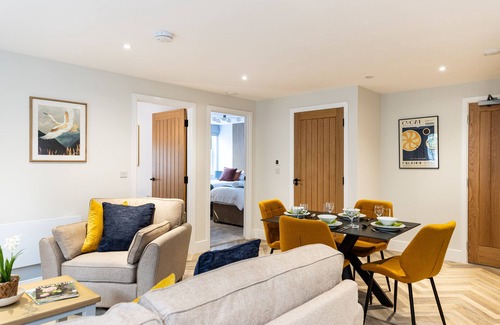 Elevate your experience in apartment 12, our first floor apartment with a charming balcony, offering 2 individually styled bedrooms for a comfortable night's sleep, accommodating up to 4 guests. The modern fitted kitchen seamlessly blends with the spacious lounge, creating an inviting atmosphere. Embrace pet-friendly hospitality, as the apartment is dog-friendly and equipped with a communal dog wash station. Drive with ease using our 4 x 7kw electric vehicle charging points, supporting eco-conscious travellers. Cyclists are welcome, with secure bike storage and racks available. Discover a culinary journey with a great pub and charming restaurant just steps away, each steeped in fascinating history. Immerse yourself in the beauty of the surroundings, as numerous walks and cycle routes await you at the doorstep, suitable for all abilities. Unwind in this tranquil retreat, where comfort meets adventure.
