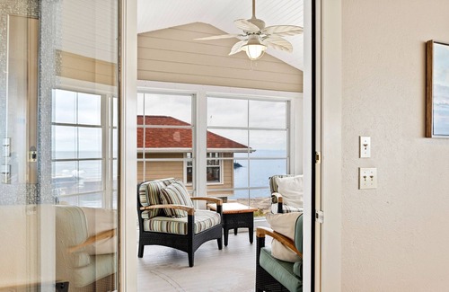 The Main House features a spacious downstairs bedroom with both a king-size bed and a queen-size bed, offering comfort and privacy for guests. The incredible living space boasts large windows that frame scenic water views, and the expansive chef's kitchen is perfect for creating delicious meals and hosting gatherings. Designed for entertaining and relaxation, this space allows everyone to unwind and enjoy the retreat.