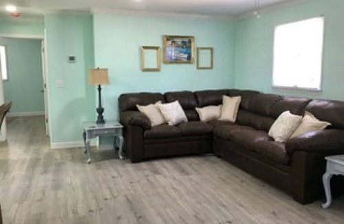 Our completely renovated home currently has 2 bedrooms and 1 full bathroom. One bedroom has a king bed. The other bedroom has 2 sets of bunk beds that are double beds on the bottom and twin beds on top. All living area is on the 2nd floor; garage area used for owner storage. Guests have access to washer/dryer downstairs. The house is on pilings and situated on 2 lots with ample room for boat parking in front or beside the house.