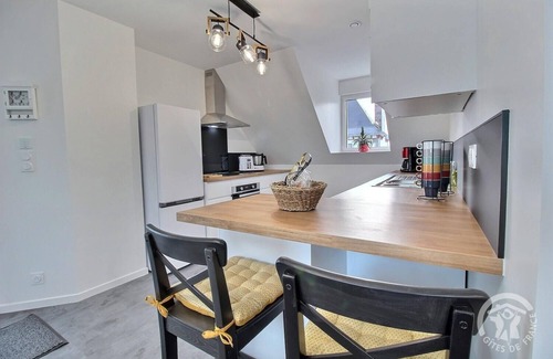 Your vacation rental is located on the first floor. It comprises, on the same level: a kitchen open to the living room (air conditioning), two bedrooms (one queen-size bed, two single beds that can be combined to form a king-size bed), a bathroom with shower, and a toilet. - Outside: A 40 m² private garden. A private terrace with no overlooking view of the guests. One private parking space on the property. The house includes the owners' second home (on the ground floor) and this gîte (upstairs): each has its own independent entrance and private garden. This accommodation is reserved for leisure guests. Come and discover this charming apartment, just renovated, located on the Côte de Goëlo, ideally located for a seaside holiday. You will reach the Petit Havre beach 2.6 km away from where you can hike on the GR 34. Very pretty panoramas in perspective. Nearby, visit Binic (4.5 km), a very lively and popular resort for its marina, its quays lined with restaurants, its seawater swimming pool. Continue towards St Quay Portrieux (11 km), another beautiful seaside resort with its fishing and marinas, its casino. Plérin with its large Rosaires beach (8 km) and Saint Brieuc with its half-timbered houses, its Légué port (10 km) will also be stopovers not to be missed. A little further, head towards Paimpol, the City of the Icelanders (38 km). And if during your stay, a getaway to an island tempts you, then go to Arcouest (44 km), heading towards the jewel of the department: Brehat! 100 m from the center of Pordic and all its shops.