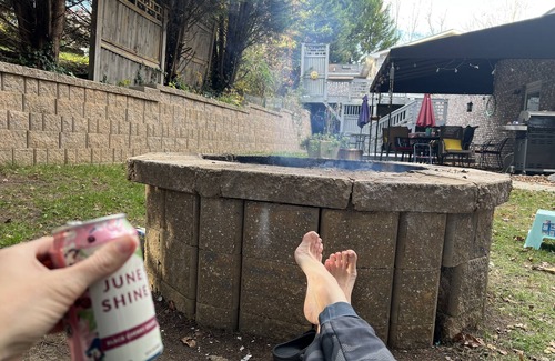 Lovely 5 bedroom house sleeps 16+ adults, plus a crib for 1 child. Totally private 4-season outdoor dining, 4 person hot tub, in-ground fire pit. Pro yoga + strength-training studio. Dedicated working space in airy loft. 7min. drive to AVL Airport & Agg Center, 15min. to Blue Ridge Parkway + hikes, 20min. to Biltmore Estate, Downtown Asheville & Hendersonville, 6 min to Riveter Climbing/Biking. Strong WiFi. Fireplace, in-ground fire pit, gas BBQ grill, Jacuzzi.. Small Family Owned. Ready for Workshops & Retreats.