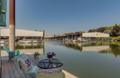 Flamingo House is perfect for the travelling nurse, digital nomad, remote worker, travelling entrepreneur or doctor or anyone looking for a cozy, fun and peaceful escape from the ordinary! Located close to downtown and the airport with 24 hour access and gated parking. And no, it doesn't rock like a boat! Easy walking distance to nearby shopping and restaurants. Wi-fi, full kitchen and even laundry! Bring your own or rent a kayak or paddleboard and enjoy exploring the river. You'll see lots of wildlife from ospreys, ducks and geese to possibly beavers and otters swimming by. Flamingo House is located in Portland's best floating home community, close to downtown and the airport with 24 hour access and gated parking. And its easy walking distance to nearby shopping and restaurants. You'll love it!