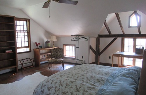 Above the stables is a large loft bedroom with exposed beams and a simple, but new, bathroom.