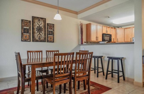 The fully stocked kitchen encompasses a refrigerator/freezer, dishwasher, microwave, and stove/oven. We supply dishes, glassware, pot and pan sets, a toaster, a blender, and a coffee maker. For specialized items such as a wok, rice steamer, or crockpot, we recommend bringing your own, as these are not provided. Enjoy complimentary amenities, including free Wi-Fi, cable TV in the rooms, and local phone service. Sheets and towel sets are provided for your stay, though they cannot be changed out. A full washer and dryer are also available in this unit. While we provide a single-use box of detergent, you may wish to bring extra if you plan to do laundry. An iron and ironing board are included. This resort is pet-free, smoke-free, and strictly prohibits trailers.