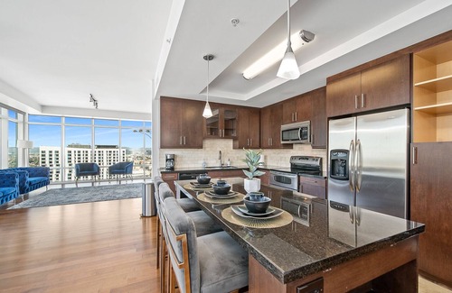 Enjoy your stay in an absolute comfortable spacious penthouse in downtown LA. This Property floor to ceiling window with Dual Master 2 bed room and 2 bath. Large kitchen with a large island for comfortable cooking and memorable dinners. As you make you’re way to the living room you will notice a breath taking view of downtown LA and Staplescenter view. Their are smart t.vs in every bed room. Washer and dryer is provided. If there any more questions about this property please feel me to ask. Hope to Host you’re stay