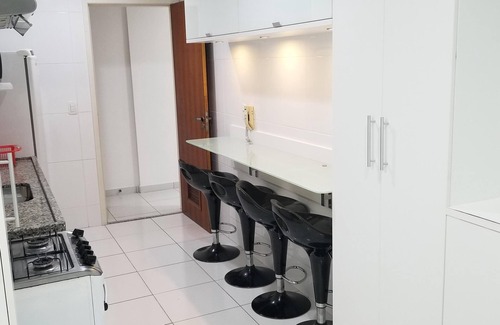 Apartment has 3 bedrooms with customized furniture, Wi-Fi, 3 bathrooms, large living room and kitchen, balcony in "L" connecting the living room and two bedrooms with balcony furniture and screened. It has 2 parking spaces and lift. Building with 24 hour doorman. Suite with Queen and air conditioning. Other rooms with double sofa bed or Berth and fan. Television 47 'with' Pay TV 'and Home in the living room and Television 42' with 'Pay TV' in one of the bedrooms.