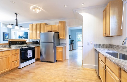 This fully-renovated home's private backyard sits within a stone's throw to the Navy-Marine Corps Memorial Stadium. It's also just 3 blocks to the bustling West Annapolis shops and restaurants and another 2-3 blocks to downtown Annapolis. However, the home itself has all the bells and whistles for a stay in Annapolis: an all-new furnished back patio and yard with a hot tub, fire-pit, BBQ grill, games and complete with a new outdoor kitchen space for prepping, Inside, you'll find a full kitchen with all new appliances, a coffee bar, a dining room table, a sunroom and a family room, each with their own flatscreen TVs.
