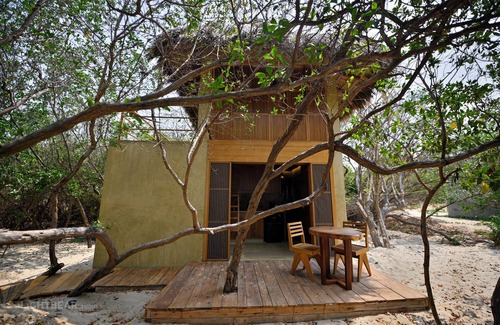 We offer a beautiful small house located on the virgin and sandy beach of Agua Blanca, located between Puerto Escondido and Mazunte. You are in paradise, facing the sea and surrounded by palm trees and mangroves. The small house is built with natural stone, a palm roof and an elegant design.