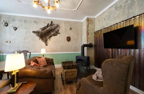 This 1-bedroom, 2-bathroom rental features a living room and a fireplace. Connect to the WiFi, or get cozy in front of the cable/satellite TV. Bathroom amenities include a hair dryer and towels. The kitchen is equipped with an oven, a stovetop, and a refrigerator, as well as a coffee maker, a microwave, and cookware. Other amenities include bed sheets, an ironing board, and heating.