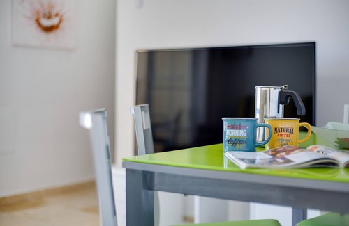 The holiday apartment Marysol in Caleta de Fuste is the perfect accommodation for an stress-free holiday with your loved ones. The 44 m² property consists of a living room, a well-equipped kitchen, 2 bedrooms and 1 bathroom as well as an additional toilet and can therefore accommodate 3 people. Additional amenities include high-speed Wi-Fi (suitable for video calls) with a dedicated workspace for home office, 2 TVs (one in the living room and one in the main bedroom), fans in both bedrooms as well as a washing machine. This accommodation does not offer: air conditioning. This vacation rental features a private terrace for relaxing evenings.