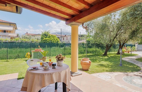 The manager comes regularly to maintain the property and uses a parking space on the property. Beautiful house "Colli". 3.5 km from the centre of Marina di Massa, on the outskirts, 1.2 km from the centre of Massa, 48 km from the centre of Pisa, in the residential district, 3.5 km from the sea, 3.5 km from the beach. Private: garden 1'000 m2 (fenced) with lawn and wildlife garden. In the house: central heating system, air conditioning, heating to be paid on the spot (08.Nov. - 28.Mar.). Roofed, parking. Supermarket 400 m, bus stop 300 m, railway station "Massa" 950 m, sandy beach 3.5 km. Nearby attractions: Pietrasanta 12 km, Forte dei Marmi 11 km, Viareggio 32 km, Riomaggiore (5 Terre) 52 km, Lucca 49 km, Carrara Fantiscritti (cave di marmo) 14 km. Well-known lakes can easily be reached: Lago di Massaciuccoli 43 km, Torre del Lago 36 km. Please note: car recommended.