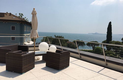 Our apartment is located very close to the enchanting Lago di Garda. From the bedroom you have a beautiful view to the pool, from the balcony to the mountains (Monte Baldo). The apartment is brand new and nicely decorated. The apartment is located in a beautiful residential complex.
