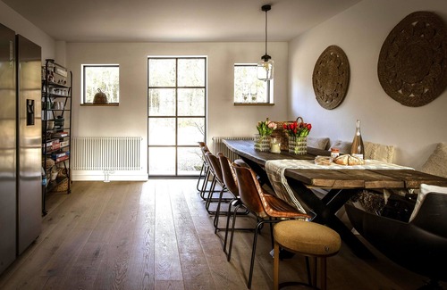 Zand7 is waiting on the edge of the Kattenbos in Lommel. This old farm has been completely renovated and the authentic elements of the past were put in the spotlight. The charm of the past and the comfort of today. Or beamed ceilings but just as well as Netfix. And thanks to the clear material and color choices (wooden floors, black steel and gray accents), the style picture fits perfectly.