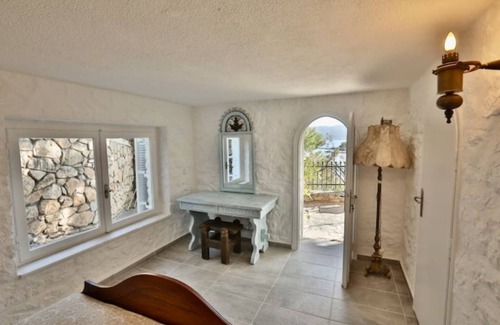 The main house has 4 bedrooms that each sleep 2 people. The balcony is spacious and overlooks the sea and has a brilliant view of Spetses. The kitchen is fully equipped, the living room is spacious and includes a fireplace next to the dining area.