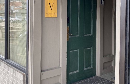 This is a two story building with a real estate office on the lower street level portion. The two bedroom apartment above has a full kitchen with all the pots and pans , many spices and condiments. Beautiful hardwood floors and interior decor