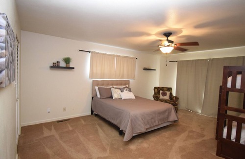 Master bedroom with queen bed and bunk bed.