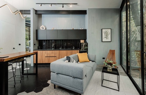 We present to you a unique one bedroom home located in the heart of a dense tropical forest. This elegant and modern house, shaped like a honeycomb, blends seamlessly with its natural surroundings, offering an unforgettable experience of living in the wild. It is ideal for those seeking tranquility and seclusion away from the city's hustle. Here, each day begins and ends with birds singing and leaves rustling, creating perfect conditions for relaxation and reflection.