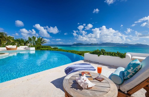 Villa Alegria Anguilla is a private luxury villa near Blowing Point on Anguilla's desirable West End. Alegria is one of the Caribbean's most beautiful and comfortable oceanfront villas with stunning views of the sea and mountains of St. Martin. Unlike most Anguilla villas, this 4+ bedroom/4.5 bath luxury home offers truly effortless beach access down a short paved footpath. You can move easily between the villa and the sugar sands of Sandy Point Beach for swimming and snorkeling in less than a minute.