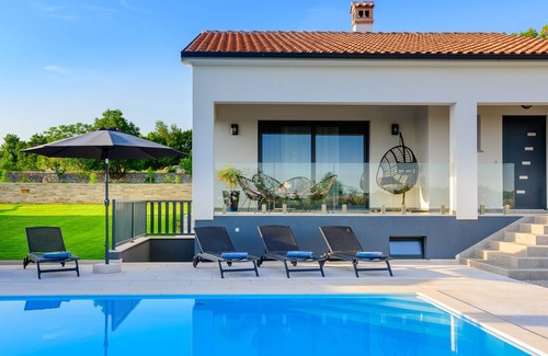 The beautiful Villa AriEm is located in the heart of Istria, surrounded by nature, featuring a private pool and a variety of activities – perfect for a family getaway.The villa has been designed with great attention to detail, ensuring you feel right at home from the moment you arrive.It features three spacious bedrooms, two modern bathrooms, a fully equipped kitchen, and a comfortable living and dining area.You have direct access from the villa to a large garden and a terrace with a pool, where you can relax on sun loungers, soak up the sun, or cool off in the water. For those who enjoy a mix of relaxation and activity, the villa offers plenty of entertainment: billiards, table football, darts, and a trampoline for the little ones. There is also a barbecue for preparing delicious outdoor meals.The villa includes covered parking for added convenience.Villa AriEm is the perfect holiday retreat for you and your family, offering unforgettable moments and the ultimate enjoyment in Istria. Distances: post office 4200m, gas station 4300m, restaurant 4200m, shop 4200m, center 4200m, sea 22600m, beach 22600m, airport 42000m.