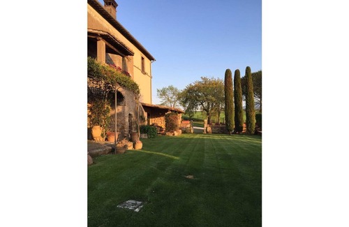 Prestigious and ancient country residence dating back to 1617, on three floors, completely restored in 2006 and used as a comfortable holiday home in the green hills in the center of the Roman Tuscia near a small Etruscan necropolis. Located on the small top of a hill (360 slm) it is surrounded by 5,000 m2 of lawn as well as an orchard and an olive grove for a total of 10,000 m2 all fenced. Particularly interesting position, as well as for the excellent tranquility, for the geographical location that allows you to easily visit both Umbria and Lazio. Swimming pool (6x12 - max depth 2.10) equipped with deck chairs, tables and umbrellas and children's pool (4x4 - depth 1.20). Laundry room (washing machine). An Etruscan tomb can be visited near the pools. On request and to be paid on the spot, additional 5 additional movable sofa beds are available (Euro 100 bed / week). Parking near the villa. Access to the property through an automatic gate. On request possibility to organize lunches or dinners, cooking courses and to participate in guided excursions (archaeological, lake, thermal, cultural, food and wine itinerary); possibility to buy the farm's products (wine, oil). Upon request and payment it is possible to take advantage of on-site wellness treatments.