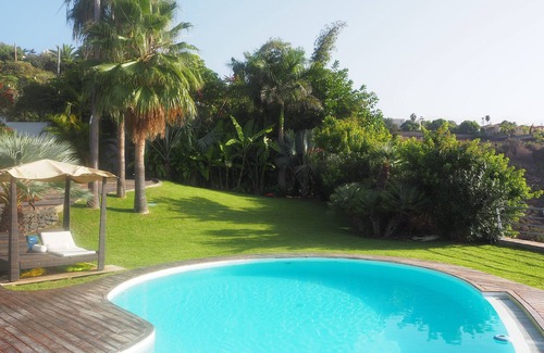 A property with an incredible view over the cliff, and towards the north coast of the island of Tenerife. Surrounded by 200 square meters of gardens. The heated pool at 26ºC throughout the year. Stands out for its privacy and tranquility. Built on one floor, it has 3 bedrooms, 3 bathrooms, and large living room with sea view, and a fully equipped kitchen. It is 1 kilometer from the center of the town of Santa Ursula, where you can find a great gastronomic offer, with lots of vegetable shops, bank, cafeteria, pharmacy.