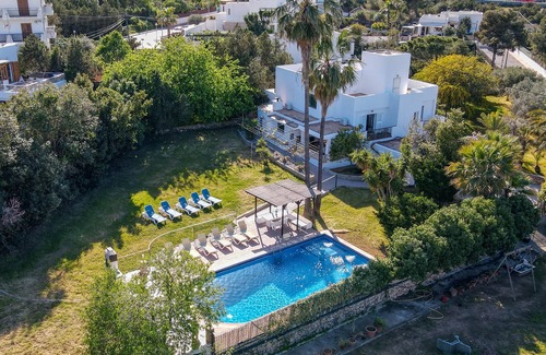 Bright, spacious and traditionally decorated, Villa Carvi offers 4 / 5 bedrooms set over two levels. Its excellent location and large gardens make it a perfect holiday home for families or large groups. The huge pool is surrounded by well-maintained gardens, with an outdoor dining area, bbq and several sun terraces. As the house is situated so close to the resort of San Antonio with its many amenities, there is no need to hire a car.