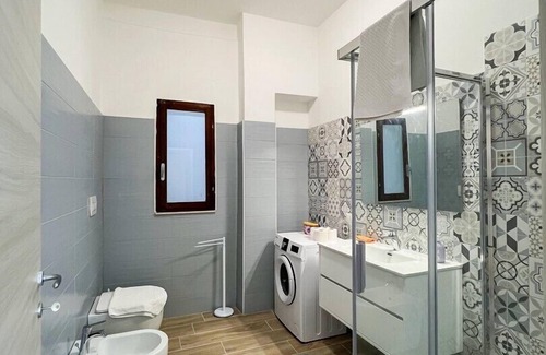 1st floor flat entirely renovated in July 2023. Large living room-kitchen with sofa bed. Three double bedrooms, two bathrooms with shower. Sleeps 8 . Complete with kitchenware and accessories, air conditioning hot/cold, oven, washing machine, dishwasher, smart tv 55", high speed wifi (100 mbit). Fenced parking space. Cot on request. Quiet position 2 km from the sea (blue flag 2023) and 300 m from SS 106 (supermarket, tobacconist, bar, restaurant etc.) For a comfortable and relaxing holiday!