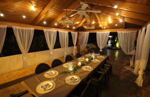 The appeal of this property extends to the outdoor area, where a spacious barbecue area stands out. Here, guests can enjoy outdoor meals and take advantage of the large natural wood pergola. This pergola provides shade and a lovely atmosphere for group dinners and meals. Attention to detail, such as natural wood, adds a rustic and elegant touch to the space, creating a unique and pleasant environment.