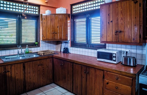 There is a spacious utility room with a Whirlpool washing machine (we recommend that you use liquid soap), electric iron, and other useful amenities. Bedclothes are changed once a week, and towels when you want them. The villa is thoroughly cleaned before you arrive.
