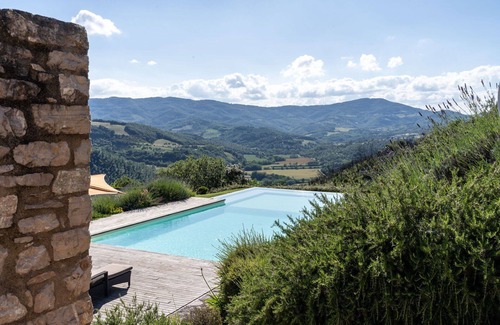 Situated in an unparalleled position on a hill overlooking the Tiber valley, with breathtaking views of fields, rolling hills, olive groves and vineyards, this ancient castle and adjoining church dating back to the 11th century have now been meticulously restored and transformed into a luxury villa with a stunning infinity pool and is a perfect location for unforgettable events and weddings.