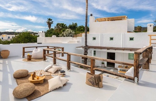 The enticing walled terrace area offers privacy as well as some lovely features. The pool is flanked by sun loungers and a dining area with barbecue, creating a space that’s particularly atmospheric as evening falls. Overlooking this, the house also has a chilled out roof terrace. Should you wish, you can even hire a projector and watch a movie on the outdoor wall.