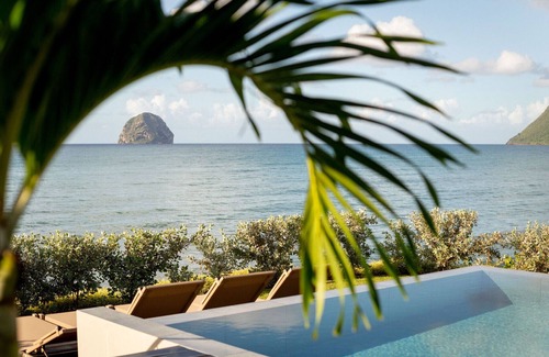 Newly built, this luxury villa offers a magnificent view of the Diamond Rock, a private swimming pool with a sunken beach and sunbathing in the water, and beach access at certain times of the year.