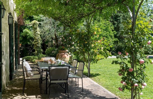 This elegant villa offers its guests large outdoor spaces, alternating areas of green with areas of white gravel. Under a shady portico is the outdoor dining area with mobile barbecue and a relaxation area facing the park. Not far from the villa is the large parking area. Guaranteeing your privacy are tall trees, planted around the perimeter of the park within which you will be welcomed by a well-kept lawn, enriched by pines, cypresses, typical Tuscan plants and various medicinal herbs. Multicoloured flowers frame the splendid swimming pool, where guests can enjoy themselves and relax.There are many pleasant spots where you can just relax, read a book or sample one of the many DOC wines of the area. N.B. It should be noted that the photo shoots are usually done in spring, therefore the colours and blooms of the gardens, lawns and parks could be different when you enter the villa.